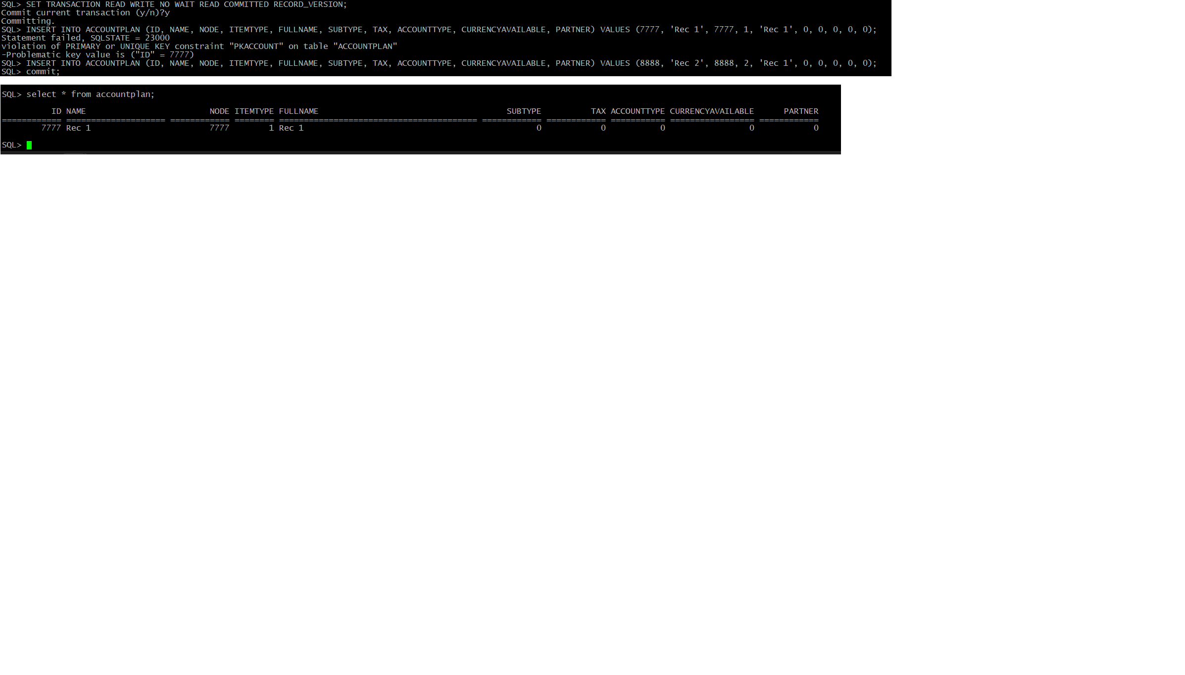 Orso писал(а) Tue, 23 May 2023 14:42А выше ничего нет, кроме ввода имени пользователя и пароля, после сразу пишу select с дефолтным уровнем изоляции, насколько я понимаю для isql уровень изоляции по-умолчанию - SNAPSHOT
