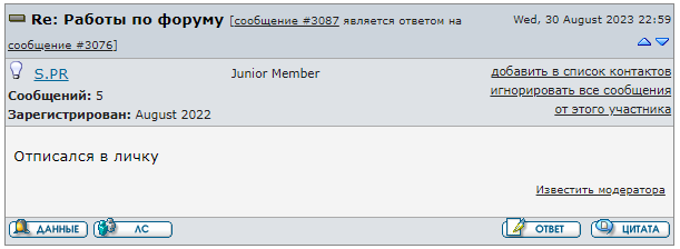 МорскойДесант писал(а) Sun, 17 December 2023 18:50Вот, короткое сообщение с текстом "Отписался в личку". Зачем показывать, что это сообщение - ответ внутри текущей темы? <...> Вообще, разве вместо этого порноблока: