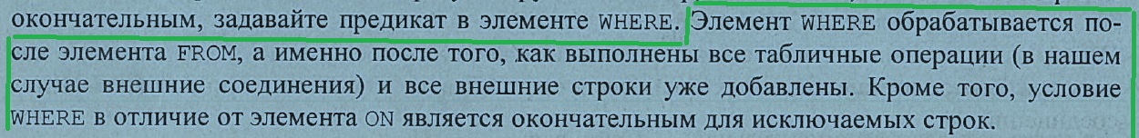 этом в столбцы, соответствующие правой таблице, помещаются значения NULL. Хорошим тоном считается не смешивать использование правых и левых соединений, а использовать всегда только левое соединение.