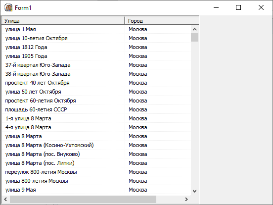 В vst дереве - два столбца: название улицы [0] и название города [1].