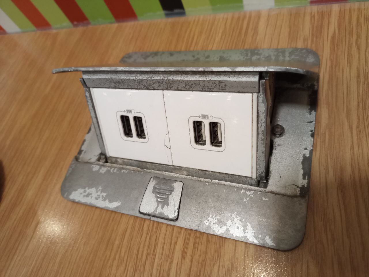 Обшарпывается, буквально всё. Например, вот так на моем столике слоты USB выглядели: