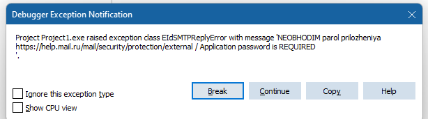 Начало » Программирование » Delphi » Что случилось с почтой (Не отправляются письма из приложения)