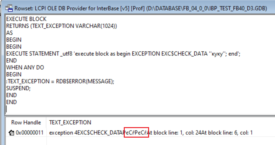 Начало » Использование СУБД » Firebird, HQbird, InterBase » RDB$ERROR и русский текст в EXECUTE STATEMENT