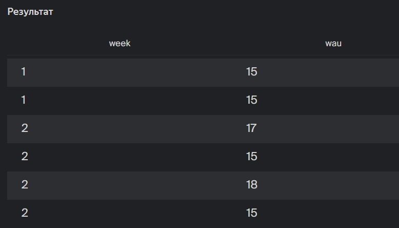 | Расчет WAU по номеру недели [сообщение #3265] |